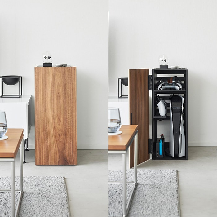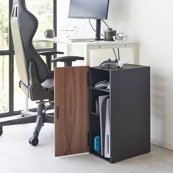 リビングやデスクなどで雑然としがちなゲーム機やコントローラなどを隠しながら、美しく収納できる大容量のラックです。
