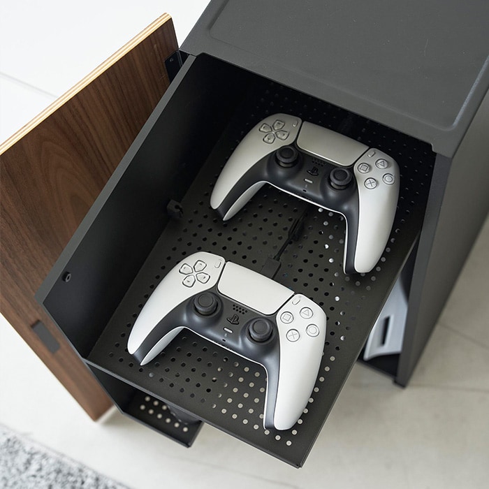 ゲーム機やコントローラーをすっきり収納できるtowerのゲーム機収納ラック。