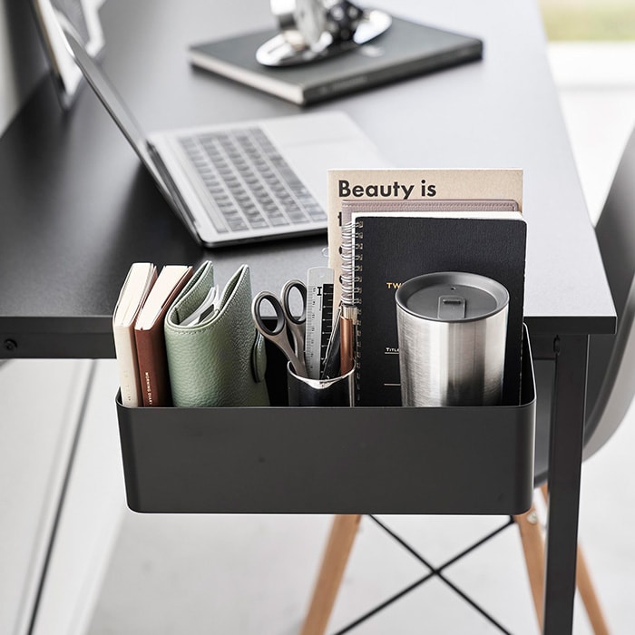 調節ネジで簡単取り付け!テーブルやデスク上を広く使えるバスケット。