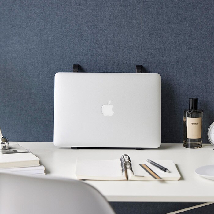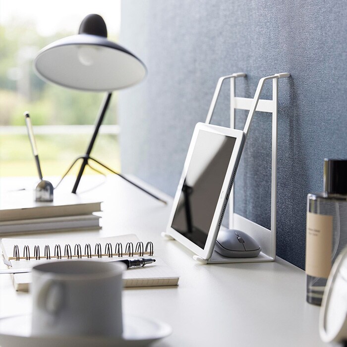 ノートパソコンやタブレットをすっきりとを立てかけられます。