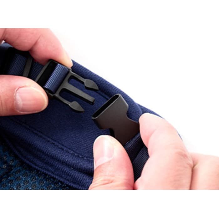 首元のバックルと合わせ、二重に体を固定することができます。