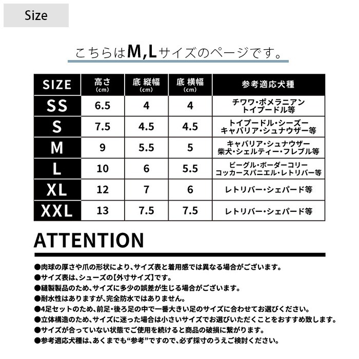 ・4足セットのため、前足・後ろ足の中で一番大きい足のサイズに合わせてお選びください。