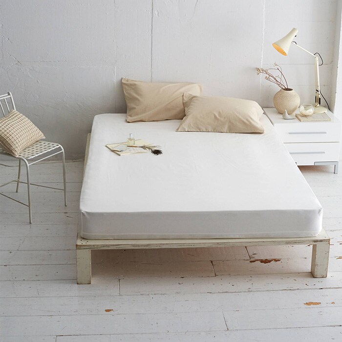 コットンのやわらかな風合いとリネンの上品なさわやかさをミックスしたシングル用ボックスシーツ。