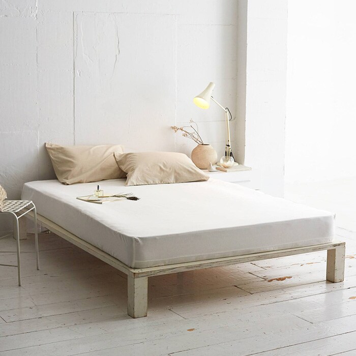 コットンのやわらかな風合いとリネンの上品なさわやかさをミックスしたセミダブル用ボックスシーツ。