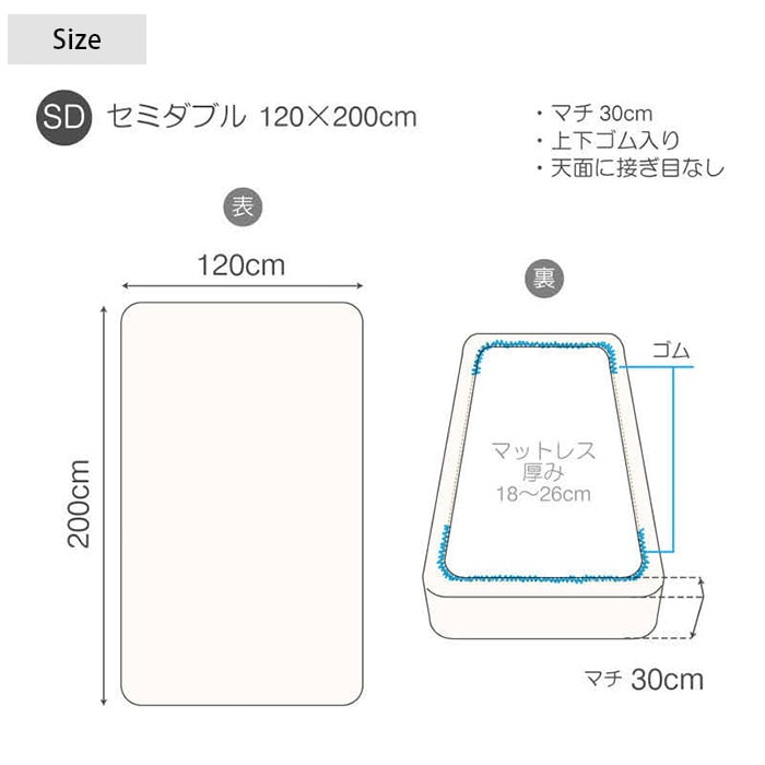 ■商品サイズ: 120×200×30cm(上下ゴム)