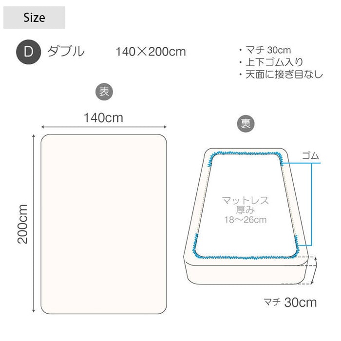 ■商品サイズ: 140×200×30cm(上下ゴム)