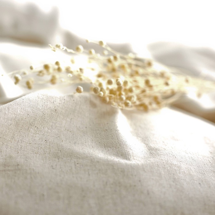 天然繊維の中でも特に丈夫といわれるリネン(亜麻)をミックスすることで、繰り返しの洗濯にも強く、洗いざらしの肌ざわりが心地よい素材です。
