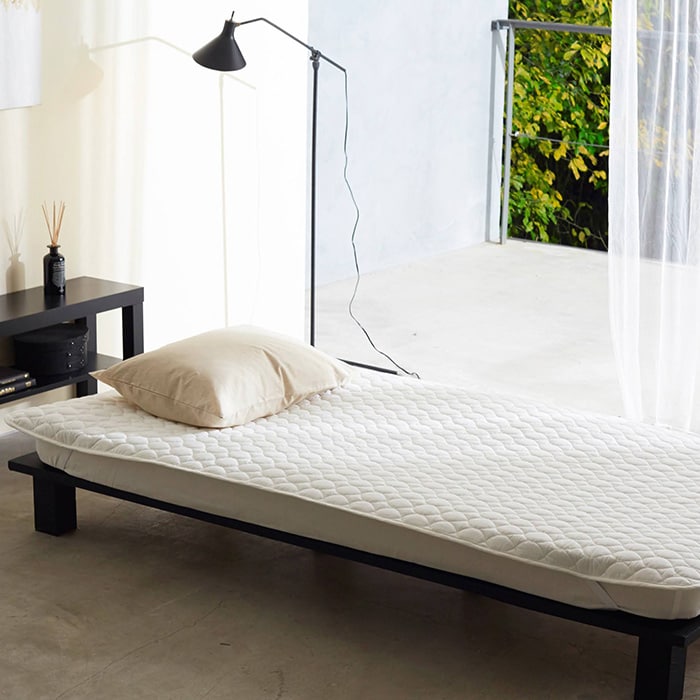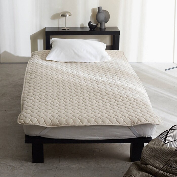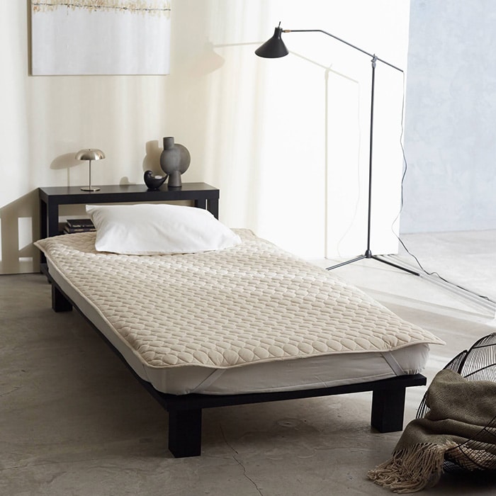 コットンのやわらかな風合いとリネンの上品なさわやかさをミックスしたシングル用敷きパッド。