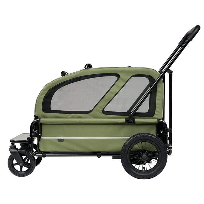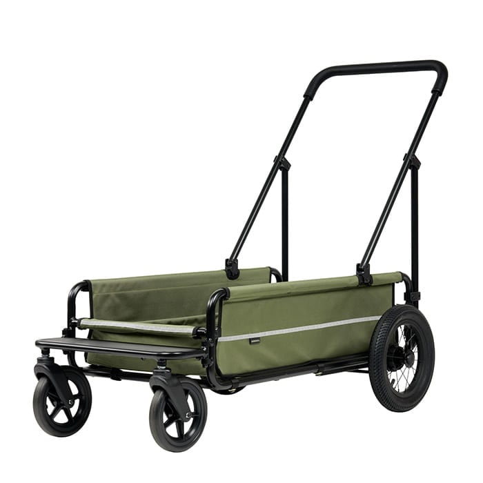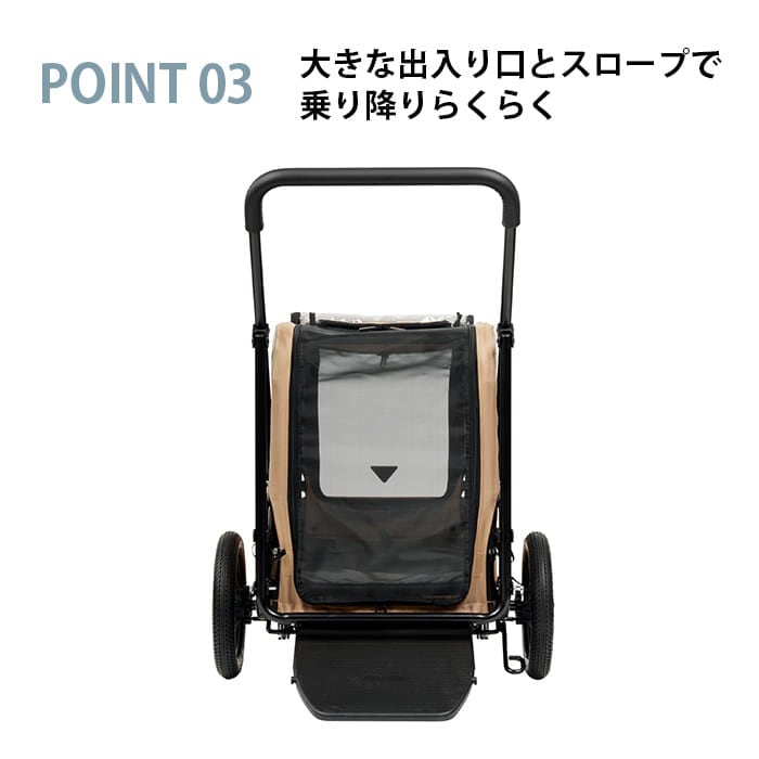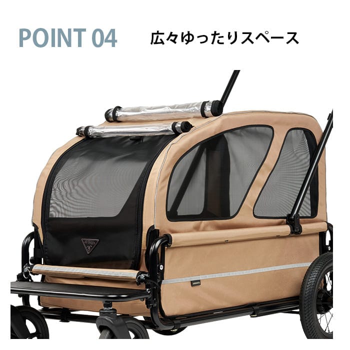 愛犬を開放的に乗せることができるほか、荷物が多い時は台車としても活躍。