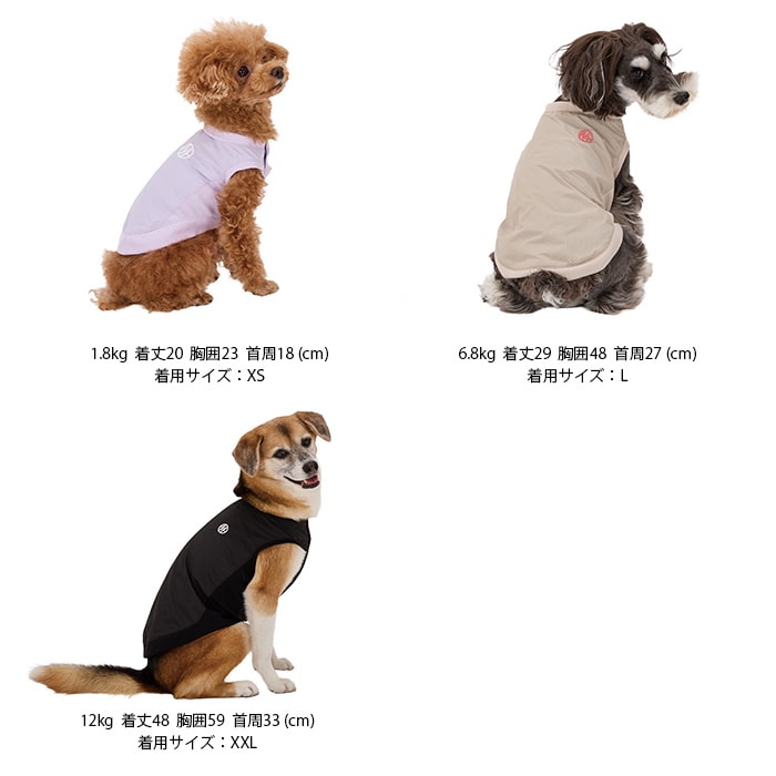 風や体温低下を防いで寒暖差の激しい季節にも対応できる軽量の犬用ナイロンベスト。