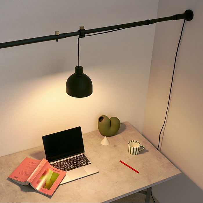 別売りパーツ「テンションロッド A/B/Pro」横突っ張り時のペンダント照明パーツです。