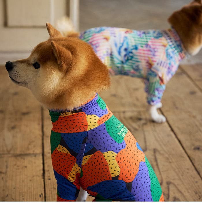抜け毛対策や汚れ防止だけじゃ物足りないワンちゃんにとっておきのアイテム。オシャレに決まるマルチプリントスーツに2025AW新柄が登場です!