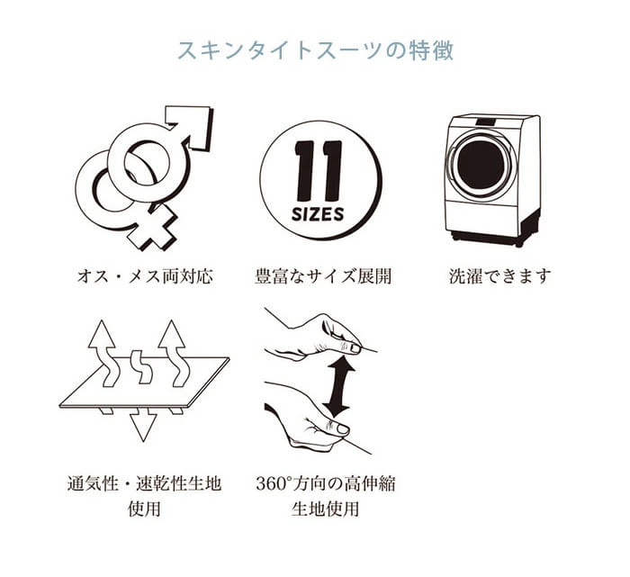 開発に時間を掛けついに完成したその名もスキンタイトスーツ。高伸縮性生地プラス豊富なサイズ展開なので、どんな犬にもフィットします。