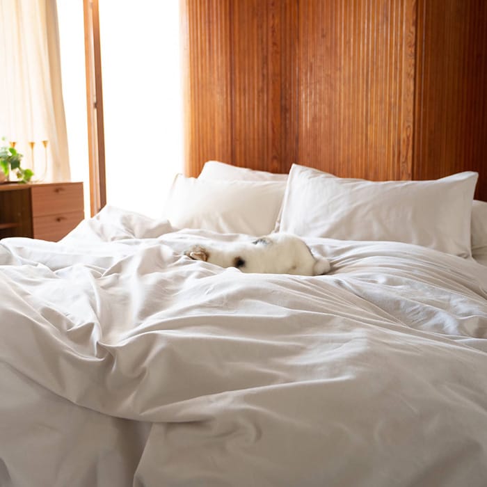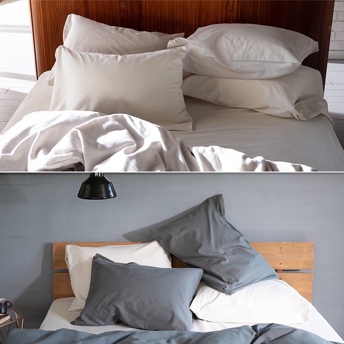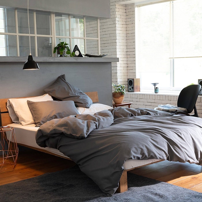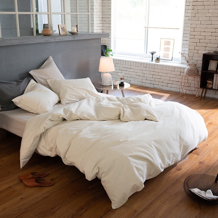 同素材の掛け布団カバー、ボックスシーツとのコーディネートをお楽しみいただけます。