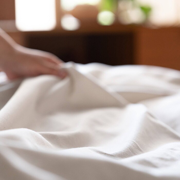 天然素材なので静電気が起きにくく、心地よい肌ざわりが特長。です。