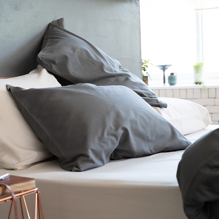 袋状になったピローケースの奥まで枕を入れ、枕の大きさに合わせて余った部分を折り込んでください。