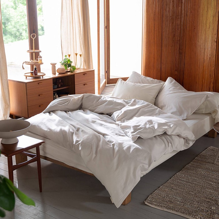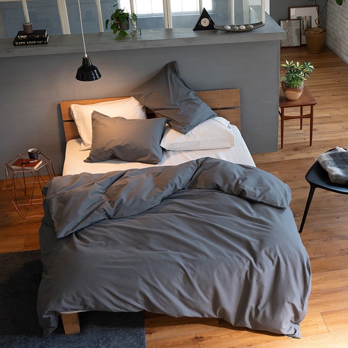 同素材の掛け布団カバー、ボックスシーツとのコーディネートをお楽しみいただけます。