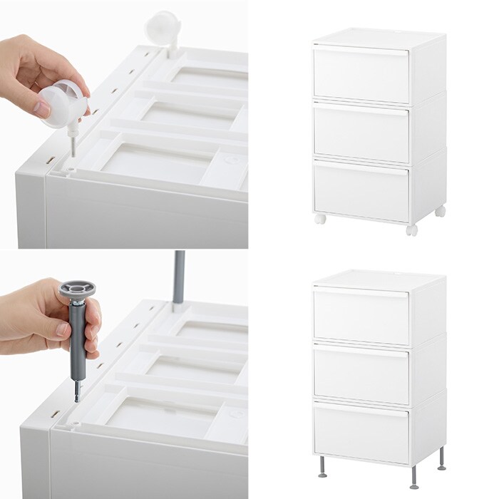 別売りのキャスターやアジャスターと組み合わせてお使いいただけます。