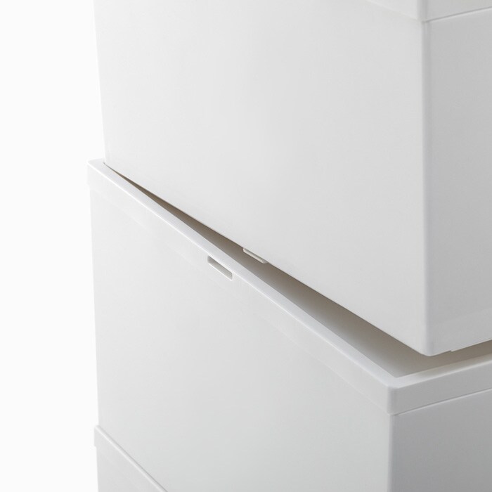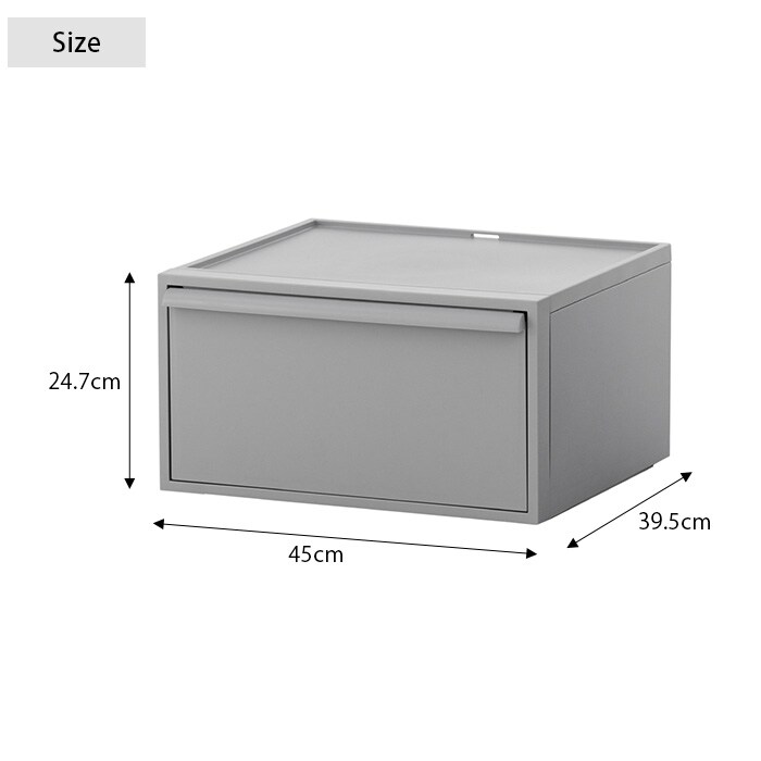 引き出しは抜け落ち防止構造。また背面ロック構造で、積み重ねた時にずれにくく、ケースごと動かずにスムーズに引き出せます。