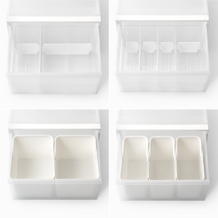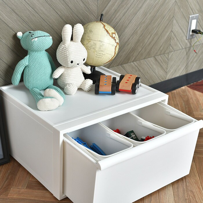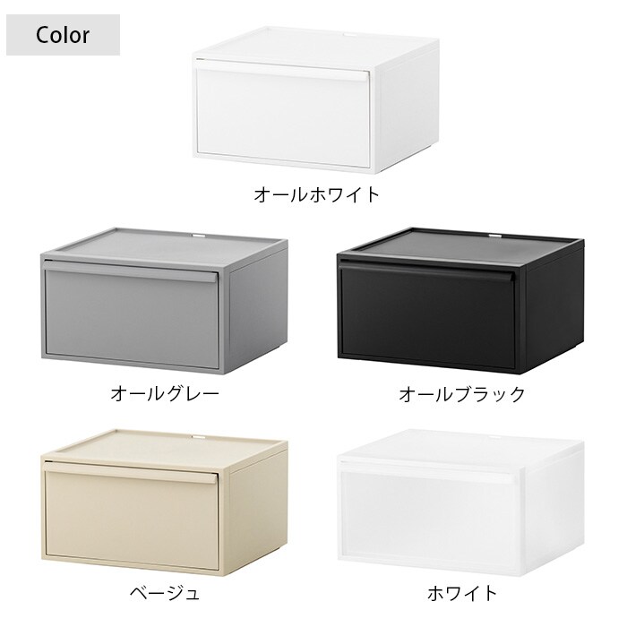 引き出し、フレームともにインテリアになじむマットな質感のポリプロピレン素材。合わせやすいカラーバリエーションです。