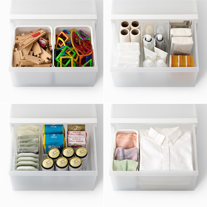 衣類やタオル、食材や小物収納に適したサイズ感。