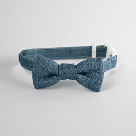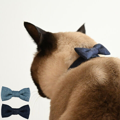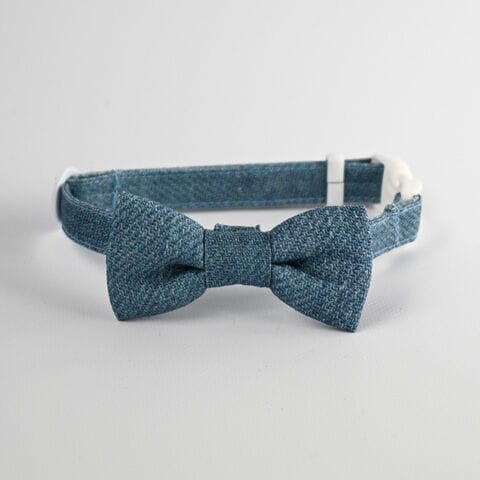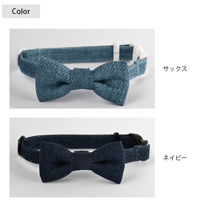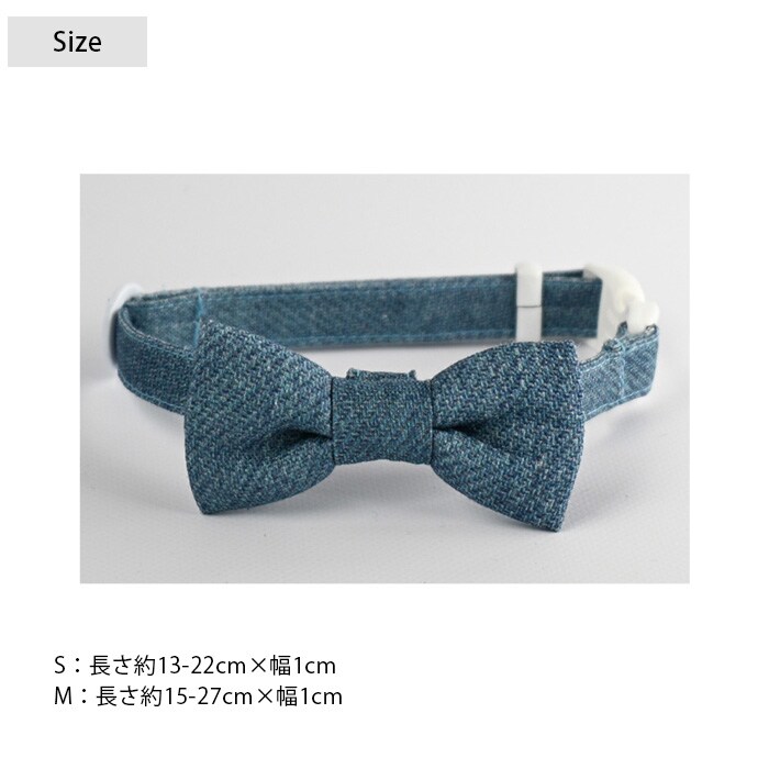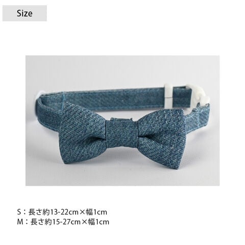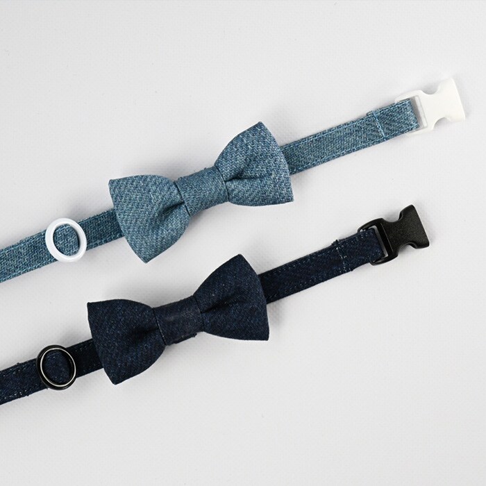 デニムプリント地がおしゃれな猫用リボン首輪。