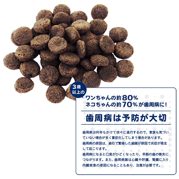 決まった量を毎日の食事に加えて与えるだけで、健康的な口内環境をサポートします。