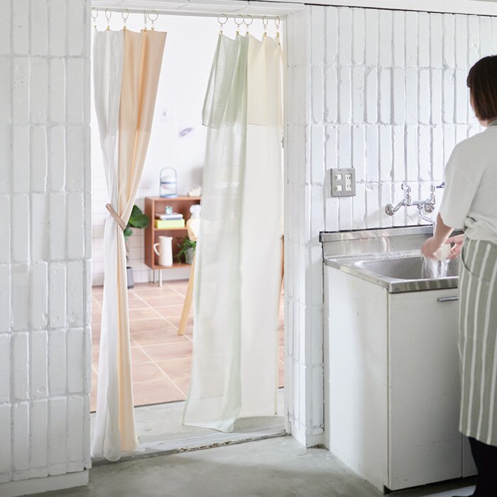 部屋の間仕切りや収納の目隠しなど、暮らし方に合わせてカーテンで境界をつくることで、気軽に空間づくりを楽しめます。