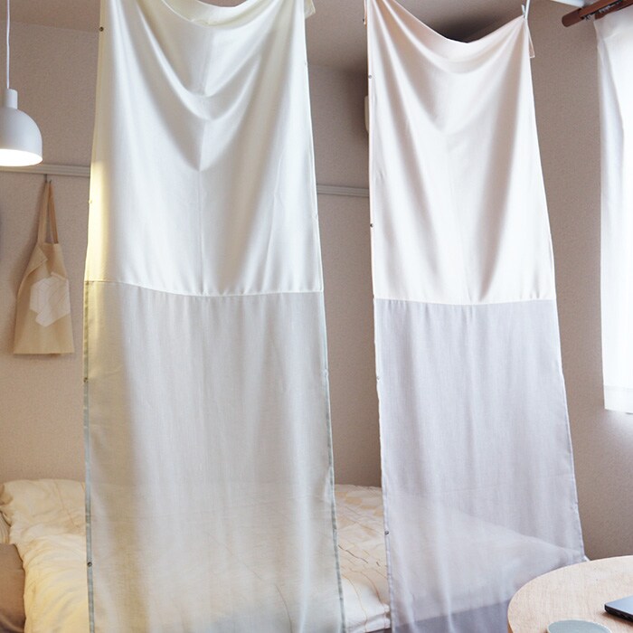 ほどよい透け感で空間をやわらかく仕切るので、誰かの声や気配を感じながらも少しだけ自分の空間が欲しい際にぴったりです。