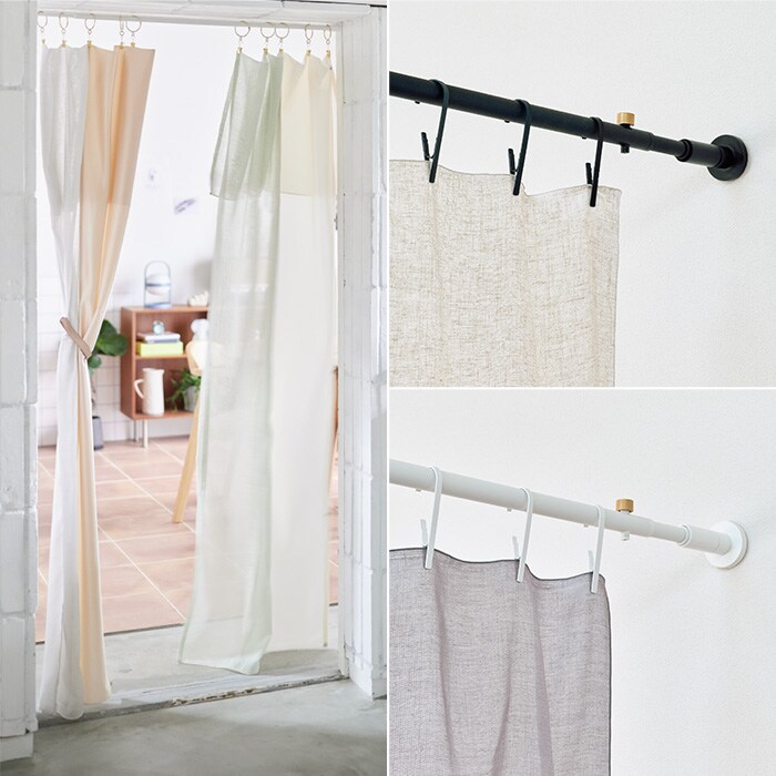 突っ張り棒とクリップがあれば、カーテンレールがない場所にも設置いただけます。