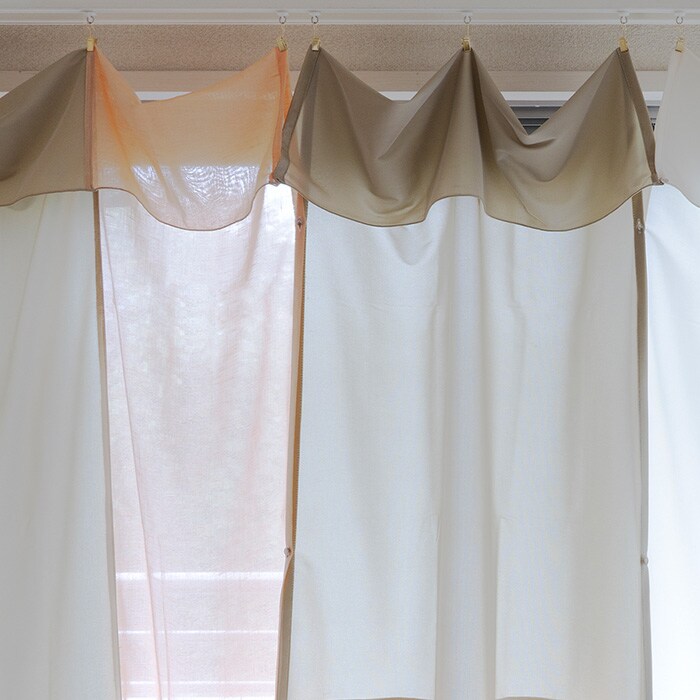 布1枚の中でも見えるところと見えないところがあり、空間をゆるやかに分けるグラデーションを作ることができます。