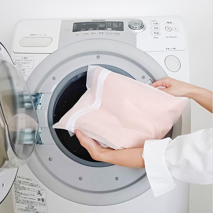 洗濯ネットに入れてご家庭の洗濯機で気軽に洗える素材。