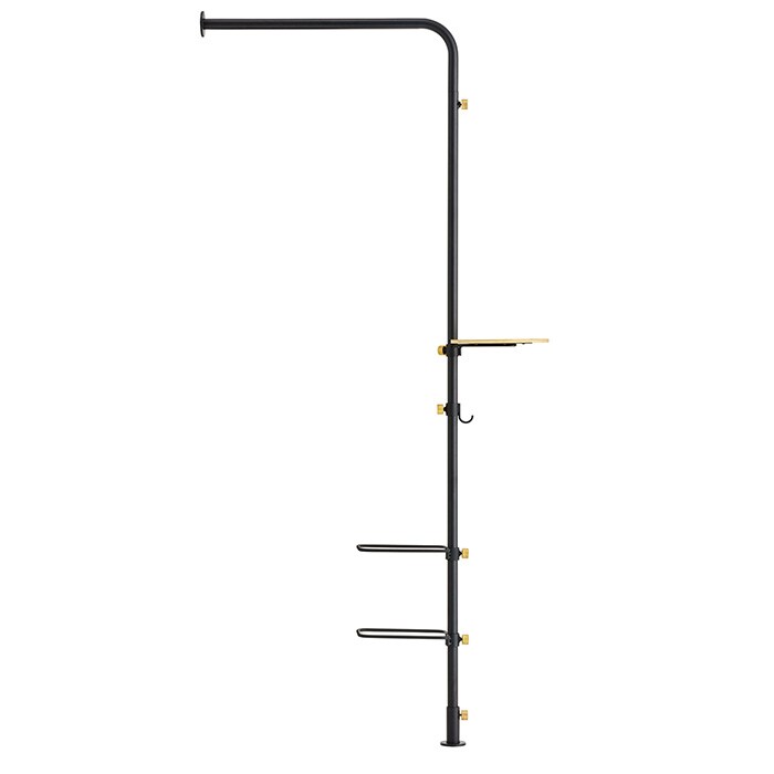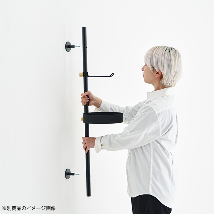 マットな質感のスチールのオプションパーツを組み合わせることで、突っ張り棒をおしゃれなアイテムに昇華しました。