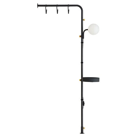 衣類を掛けたり間仕切りに使いながらも、ポールにトレイやランプを取り付けることで便利な収納アイテムにすることができます。