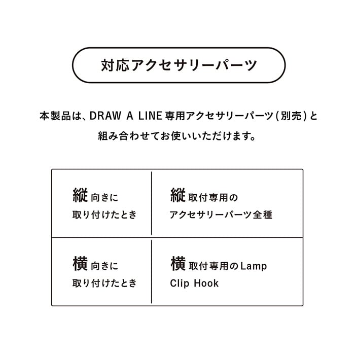 DRAW A LINE(ドローアライン)シリーズのパーツと組み合わせて、ディスプレイ収納や照明など多様な用途でお使いいただけます。