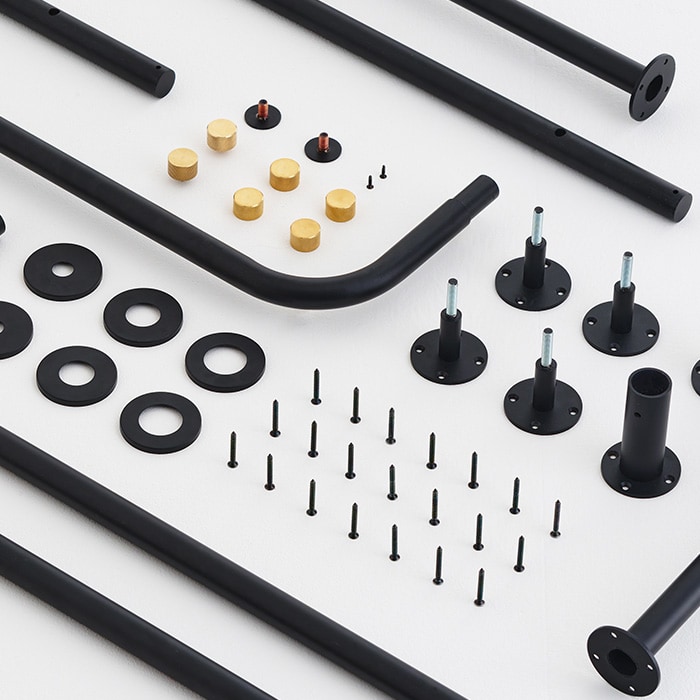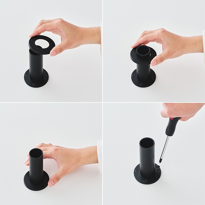 ・固定時はパイプにねじを押し付けますので、パイプに傷がつきます。暮らしとともに素材の経年変化 をお楽しみください。