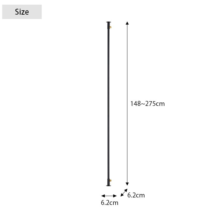 148cmから275cmまの長さで自由にポールの長さを調整可能。
