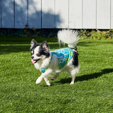 濡らして絞って振るだけでひんやり爽快な犬用タンクトップ。
