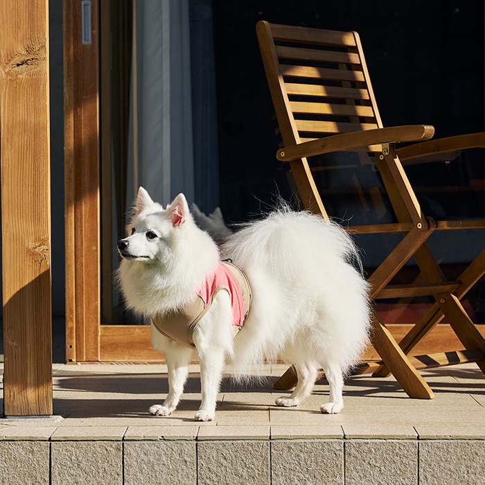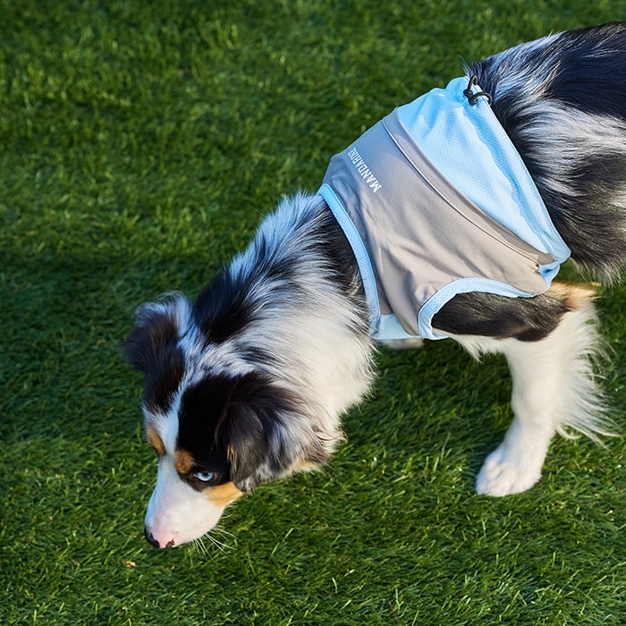 夏の暑さ対策に!背中に保冷剤が入るポケット付き犬用ベストです。
