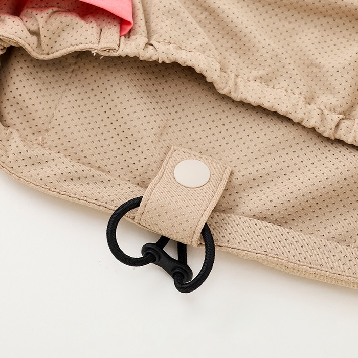 調節ゴムは背面側に付いているスナップボタンで収納可能です。