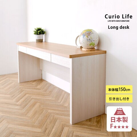こどもと暮らしオリジナル Curio Life ロングデスク 引出し付き アイボリー×ナチュラル キッズ デスク おしゃれ 幅150 ツインデスク