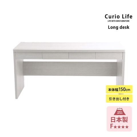 学習机 シンプル 子供 長机 日本製 こどもと暮らしオリジナル Curio Life ロングデスク 引出し付き 幅150cm アイボリー新シート 学習机 リビング 薄型デスク 学習デスク