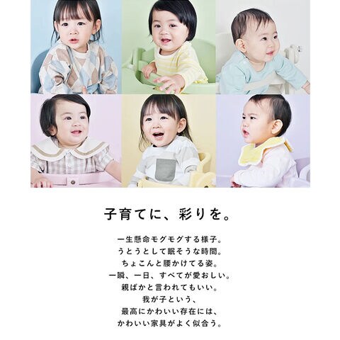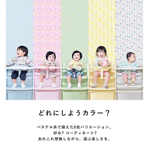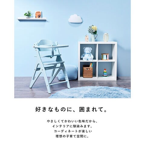 [特徴]食卓に、彩りを。 ニュアンスカラーの選んで楽しいベビーチェア。 セーフティーチェアベルト付属。