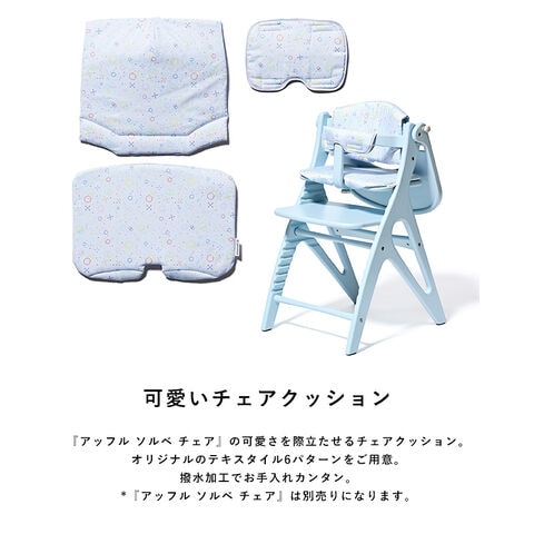 [仕様]洗濯可(ネット使用)、乾燥機NG、対象商品『アッフル ソルベ チェア』『すくすくチェア GL』
