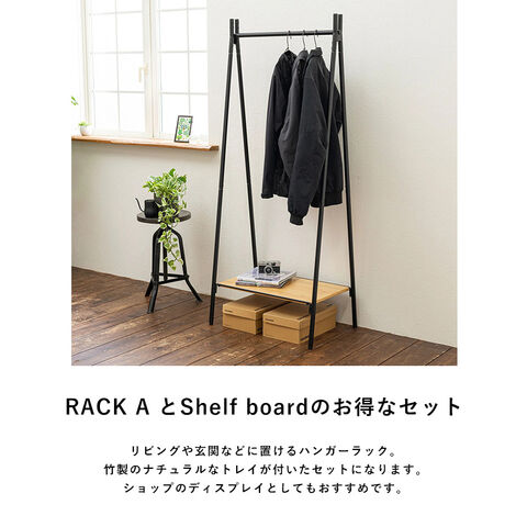 TETSUNAGI テツナギ RACK A & Shelf board SET  ハンガーラック スリム 省スペース おしゃれ 棚付き スチール アイアン 日本製 コートハンガー シンプル インテリア 家具 収納