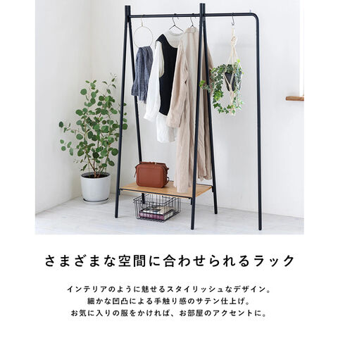 TETSUNAGI テツナギ RACK A & Shelf board + Side hanger SET T400601 ブラック ハンガーラック スリム 省スペース おしゃれ 棚付き スチール アイアン 日本製 コートハンガー シンプル インテリア 家具 収納