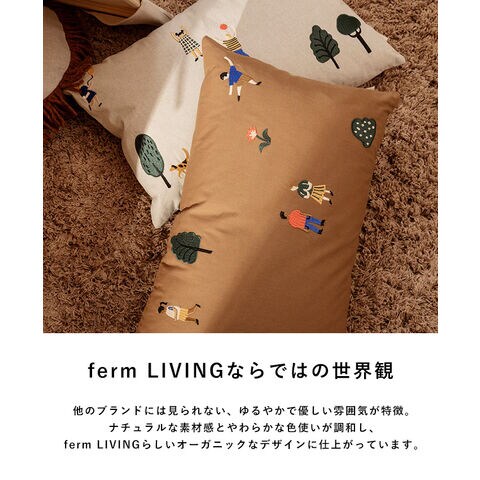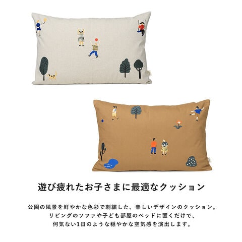 ferm LIVING ファームリビング The Park Cushion 1104263363 ナチュラル クッション 60×40cm オーガニックコットン フェザー ダウン 刺繍 北欧雑貨