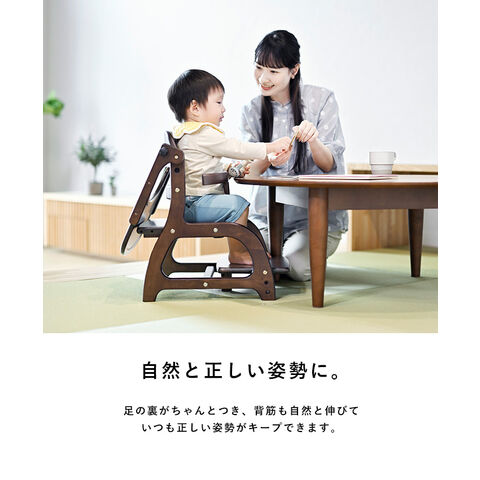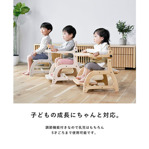 テーブル付きなのでまっすぐ向かい合ってごはんを食べさせやすく、食べこぼしも少なくできます。テーブルは後ろに回すことも可能。使わなくなったら取り外しできます。
