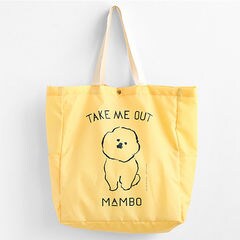ゆるい子犬のイラストがかわいい、大きめのナイロントートバッグ。軽量で水や汚れにも強いので、幅広いシーンで気軽にお使いいただけます。