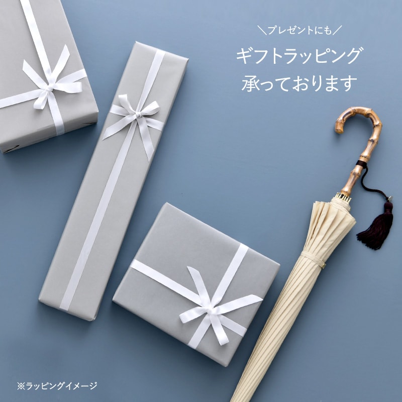 『傘の顔』と呼ばれる持ち手には、昔ながらの「寒竹」を使用。節立った風情あふれる佇まいは唯一無二の表情を持ち、今なお人気の高い素材です。使い込むほど手になじみ、光沢感を増してゆく経年変化(エイジング)がお楽しみいただけます。